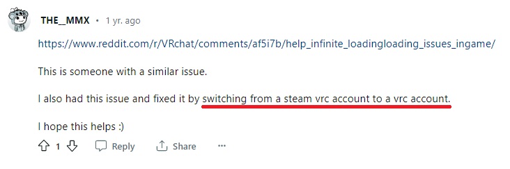 来源:从Steam Vrchat帐户切换到VRCHAT帐户为用户解决了问题。