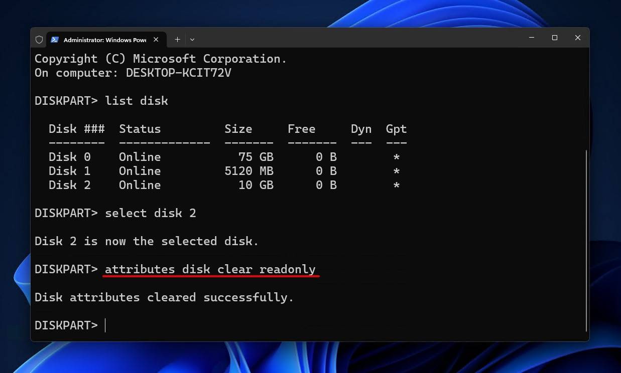 - 类型选择磁盘*, 替换*与您的磁盘号。