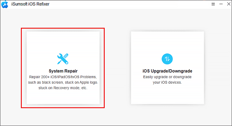 步骤2:选择系统修复。使用 USB 数据线将 iPhone 连接到电脑。