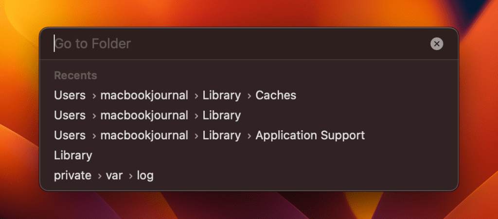 - 在“转到文件夹”窗口中,键入以下路径并按进入: