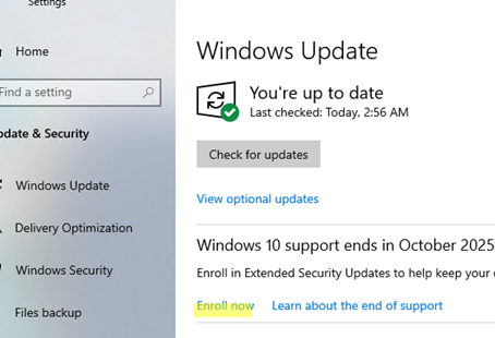 Windows 10 support ends in October 2025 Enroll in Extended Security Update to help your device secure.