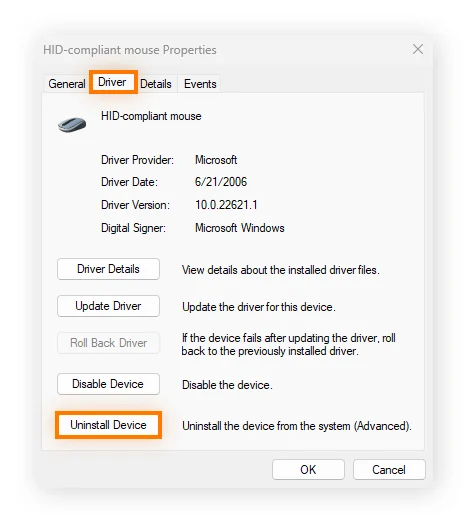如果出现提示,请确认卸载(以及是否删除驱动程序软件)。