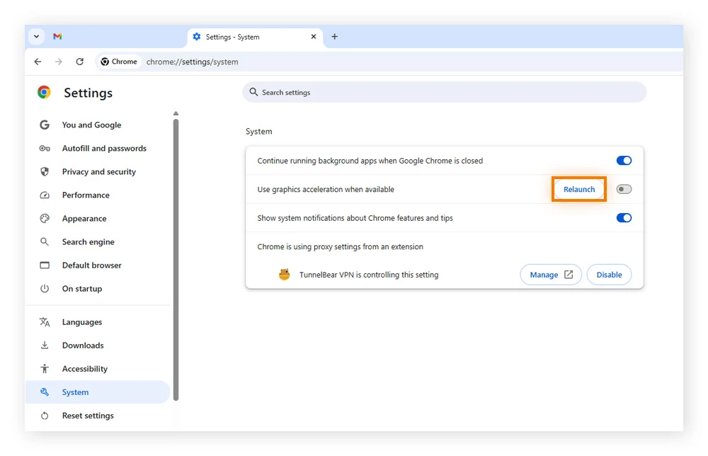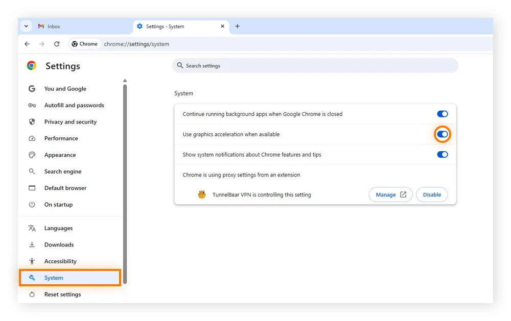 按Ctrl + L并输入铬://设置/系统。按进入。