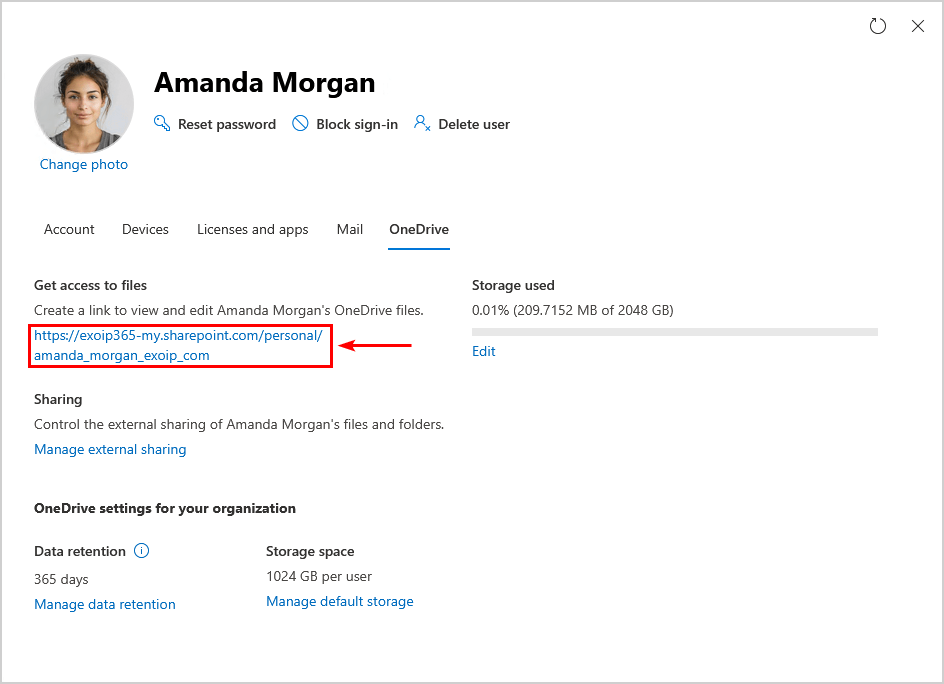 用户已成功获得对其他用户 OneDrive 的访问权限,现在可以使用您在上一步中复制的个人 OneDrive URL 进行访问。