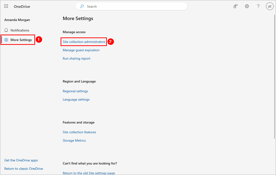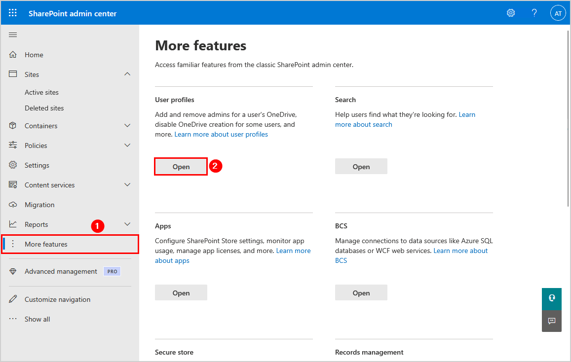 要使用 SharePoint 管理中心向其他用户授予 OneDrive 访问权限,请按照以下步骤操作: