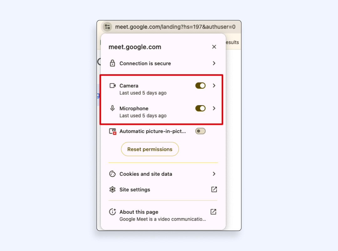 Zoom 或 Google Meet 等网站显然需要摄像头或麦克风权限,以便您在会议期间与同事进行交流。与需要实时照片进行身份验证的银行或文档应用程序相同。这些都是正常请求,但前提是您信任您所在的网站。