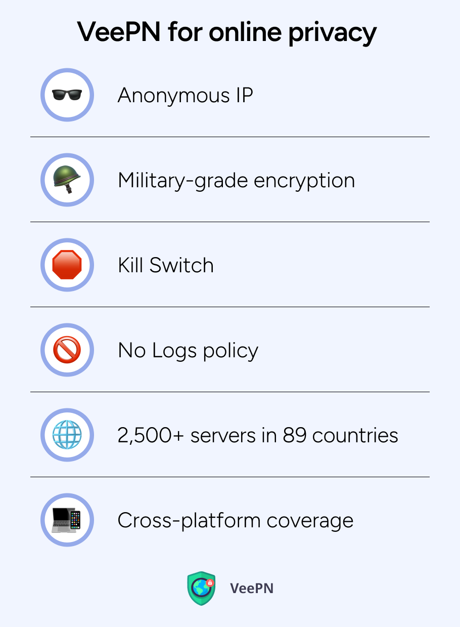 让我们看看 VeePN 还能如何保护您的在线隐私。