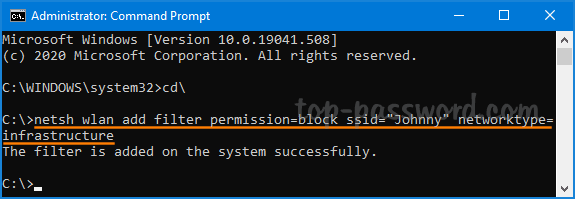 有时,您可能需要配置Windows 10以阻止除您自己的SSID以外的所有其他Wi-Fi网络。为此,运行以下命令: