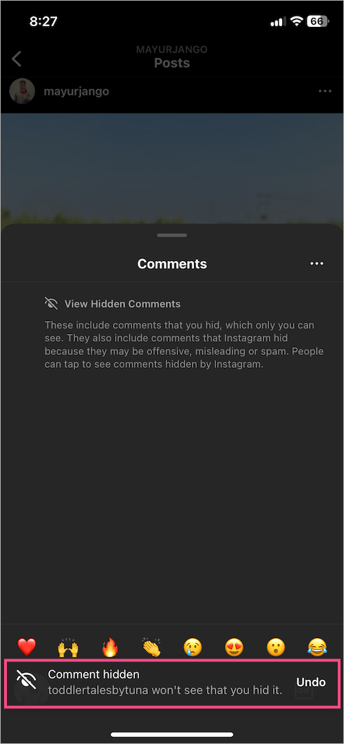 隐藏特定评论相对比删除它更好,因为您可以随时取消隐藏评论。此外,您可以在 Instagram 上手动隐藏评论,让他们不知道并取消隐藏它们。