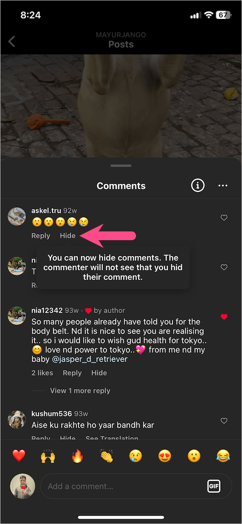 Instagram 应用程序的最新更新让您手动隐藏或取消隐藏评论在你自己的帖子下。当您隐藏某个帖子或卷轴上的评论时,该评论仅对您和评论者可见。