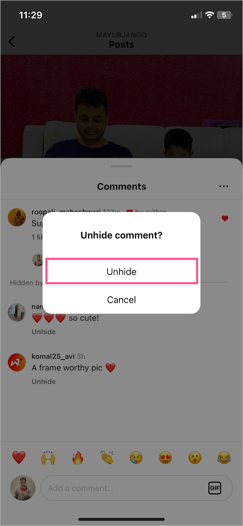 - 要取消隐藏 Instagram 上的评论,请点按“取消隐藏' 具体评论下的选项。