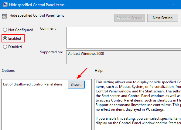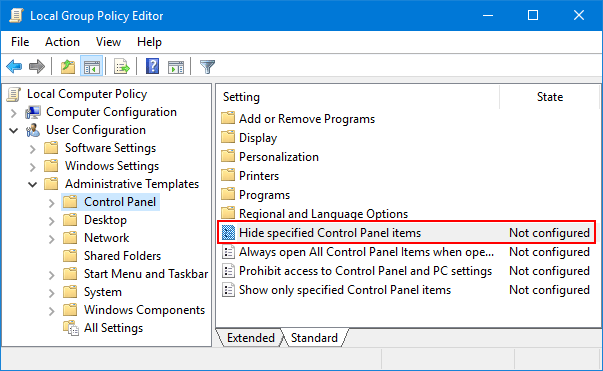 - 关闭本地组策略编辑器并重新启动计算机。您指定的项目/小程序将不再显示在控制面板中。