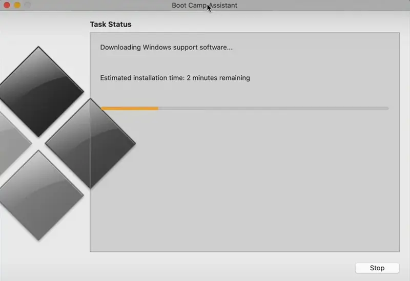 Boot Camp Assistant 将为 Windows 创建一个分区并下载必要的驱动程序。