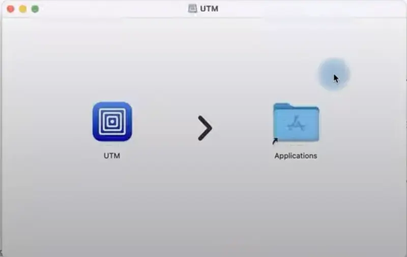 打开下载的 UTM .dmg 文件并将 UTM 拖到您的应用程序文件夹中。