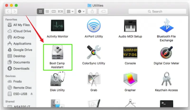 如果没有,请从 USB 驱动器或 Boot Camp 分区手动打开 Boot Camp 安装程序。