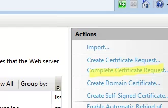 打开 IIS 管理器控制台,转到“证书”部分,然后选择完成证书请求。