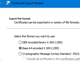 - 选择Base-64 编码的 X.509(.CER);