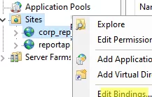 现在您需要将证书绑定到 IIS 网站、端口和/或 IP 地址。在 IIS 控制台中找到您的网站,然后选择编辑绑定。