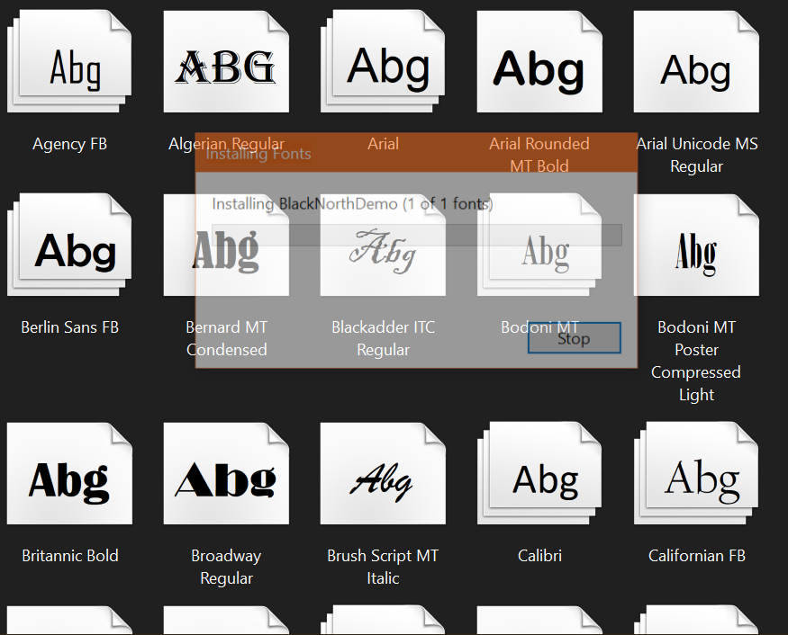 或者,您可以通过复制文件并将其粘贴到 Windows 字体文件夹(通常位于文件资源管理器中的“C:WindowsFonts”)中来将字体安装到 Windows 系统。