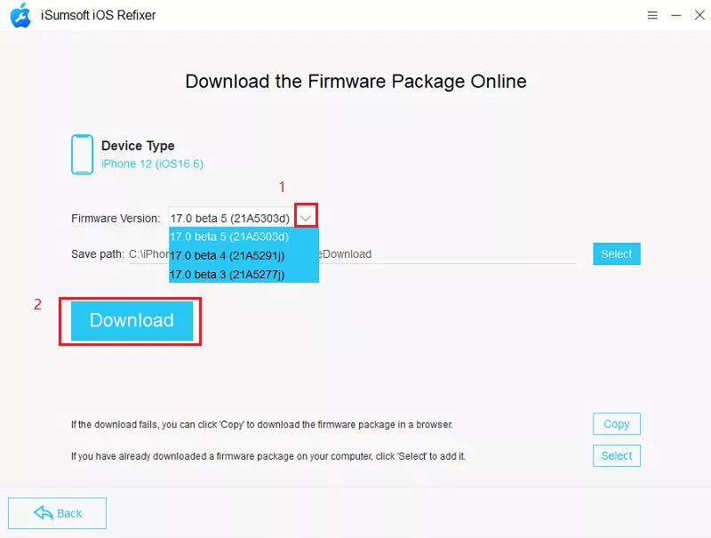 在那里,选择iOS 17 公开测试版并点击后退。然后点击下载并