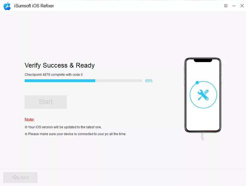 第7步:下载完成后,单击开始,你的 iPhone 将会