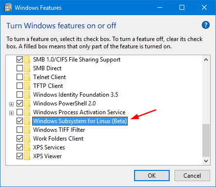 将打开一个新窗口。检查“Linux 的 Windows 子系统”选项并单击好的。