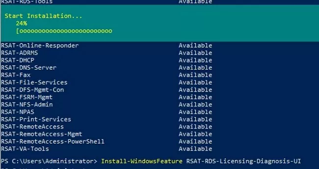 Install-WindowsFeature RSAT-RDS-Licensing-Diagnosis-UI