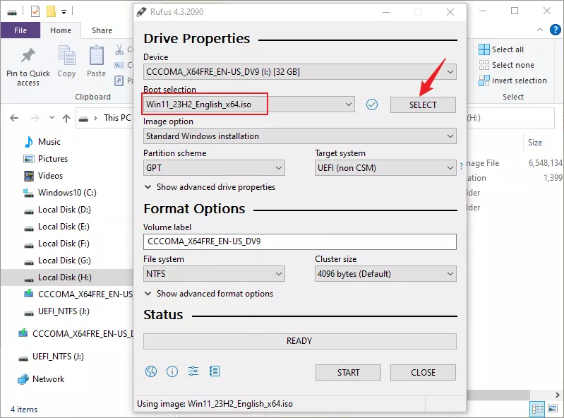 您下载 Windows 11 23H2 ISO 文件的位置。找到后,选择该文件