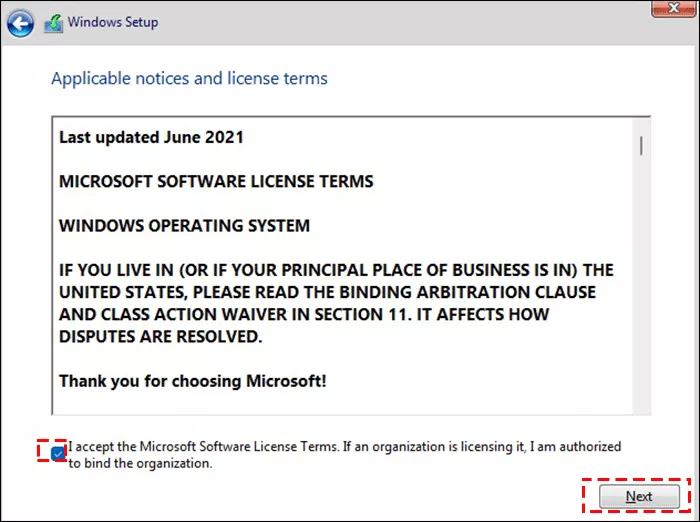 步骤8:勾选复选框以接受许可条款。此外,单击“下一个”。