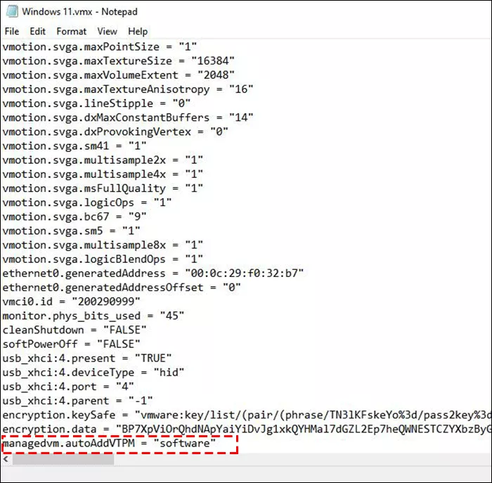 5: 添加autoddvtpm =“软件”在记事本上保存。