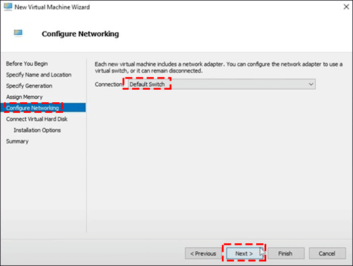 步骤6:配置网络适配器以使用虚拟开关,然后单击“下一个”。