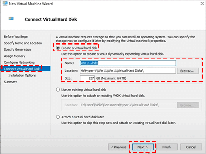 步骤7:创建一个VHDX硬盘,然后单击“下一个”。