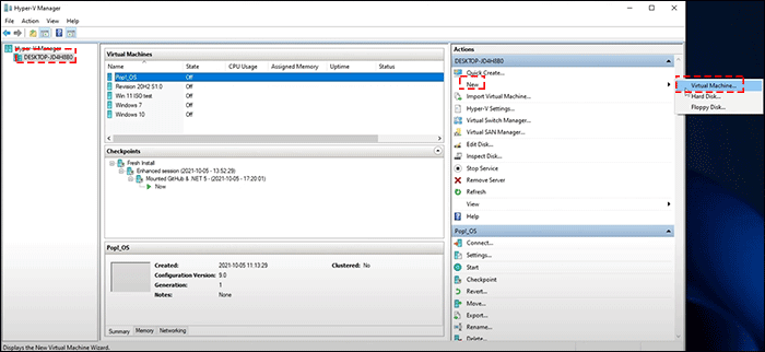 步骤2:打开Hyper-V管理并创建新的虚拟机。