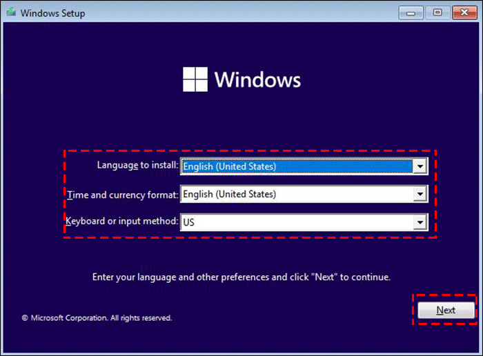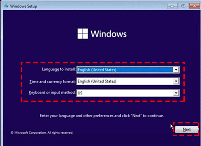 步骤4:确保语言和其他首选项,然后单击“下一个”继续。