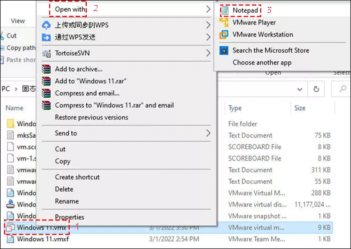 4:找到带有.VMX扩展名的文件,并使用记事本打开。