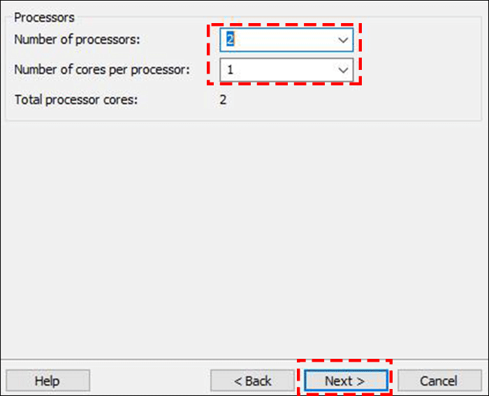 步骤8:指定此虚拟机的配置处理器,然后单击“下一个”。