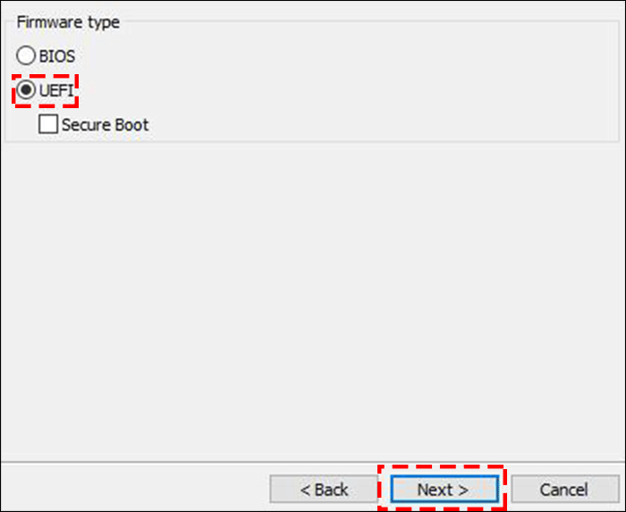 步骤7:为此虚拟机选择一种固件类型,然后单击“下一个”。