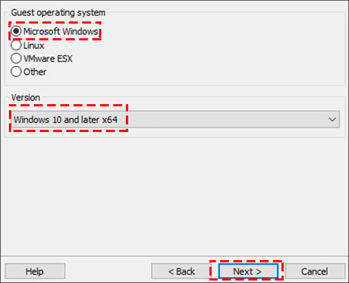 步骤5:选择操作系统将安装在此虚拟机上,然后单击“下一个”。