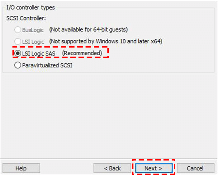 步骤11:选择要使用的SCSI控制器类型,然后单击“下一个”。