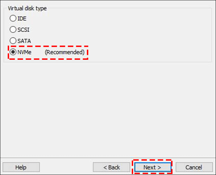 步骤12:选择要创建的磁盘类型,然后单击“下一个”。