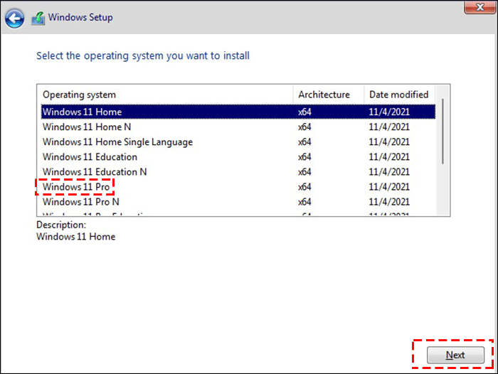 步骤7:选择要安装的操作系统,在这里我建议您选择Windows 11 Pro。