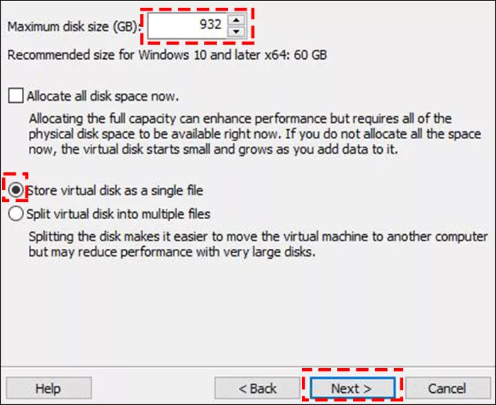 步骤14:指定您希望此磁盘为的磁盘容量,然后单击“下一个”。