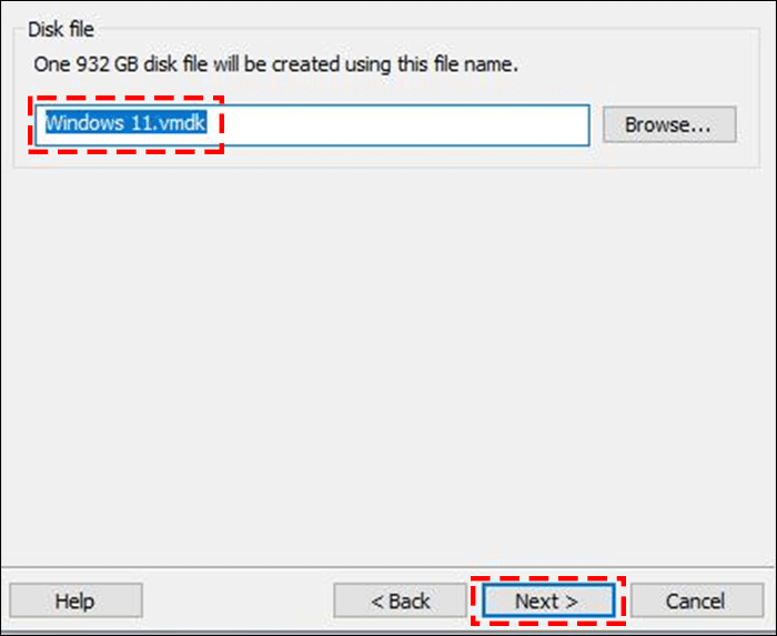 步骤15:指定磁盘文件名,然后单击“下一步”。