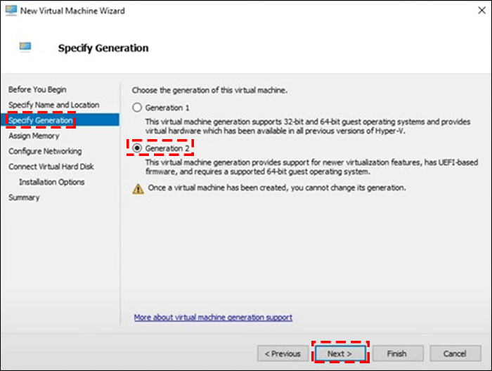 步骤4:指定该虚拟机的生成,然后单击“下一个”。