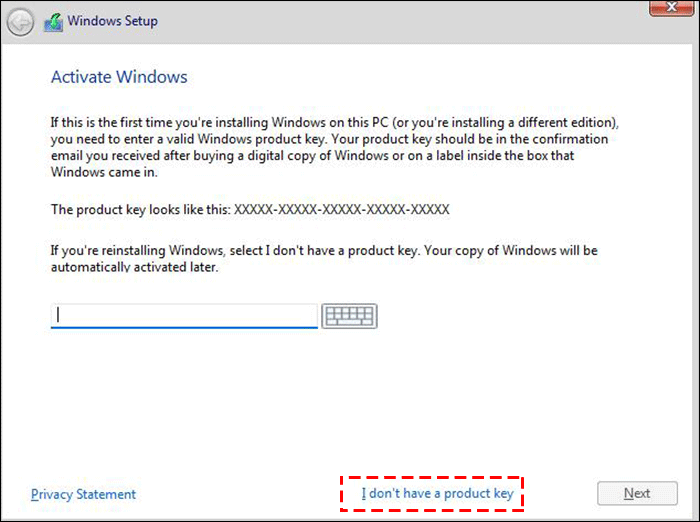 步骤16:输入有效的产品键或单击“我没有产品密钥”如果您没有。