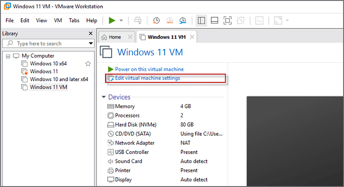 第 1 步:点击编辑虚拟机设置在现有的虚拟机中。