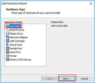 第三步:选择硬盘作为硬件类型,那么下一个。