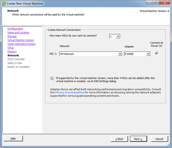 - 接下来,您可以指定是否要分配给虚拟机的 NIC 数量。这里我将其保留为默认值。