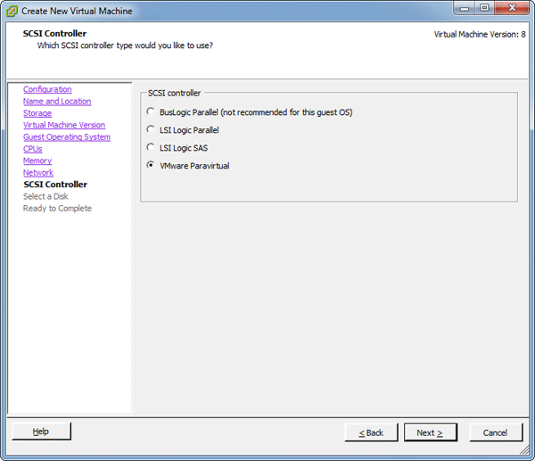- 选择VMware 准虚拟化因为它是高性能存储适配器,可以带来更大的吞吐量和更低的 CPU 利用率。