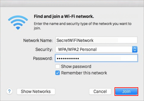 第 5 步:输入网络密码在密码字段中,然后点击加入。